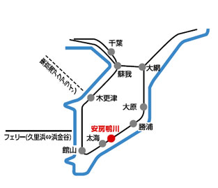 川崎浮島JCT → 東京湾アクアライン → 木更津JCT → 君津IC → 鴨川