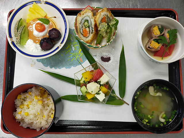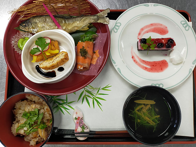 ハートフルでは、美しく楽しめる食事を目指し、近海でとれる海産物や農作物を使用し、栄養を考えながら彩のある食事を提供しています。