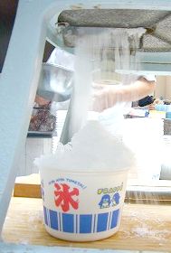 キ~ンと冷たいかき氷!私も食べたいなと願っておりましたら。3時のおやつならぬ、お茶タイムに眼前に出てきました。とっても嬉しく、パクパクとメロンシロップ(希望はレモンシロップだったが・・・・・・・)で頂きました。ごちそうさまでした。